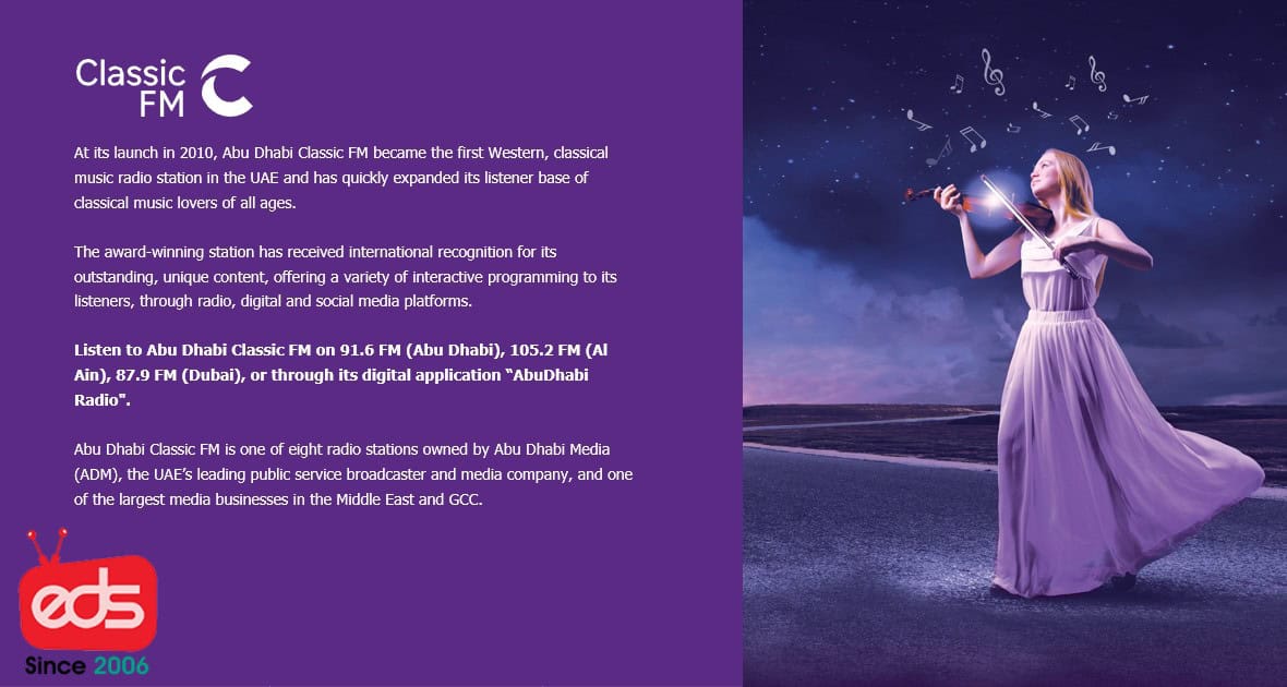 Abu Dhabi Classic FM, available on 91.6 FM in Abu Dhabi, 105.2 FM in Al Ain, and 87.9 FM in Dubai, is a premier classical music station in the UAE. It attracts a sophisticated and discerning audience, making it an ideal platform for businesses aiming to reach a high-quality listener base. Here’s an overview of the advertising options available, benefits, and steps to create an effective campaign on Abu Dhabi Classic FM.